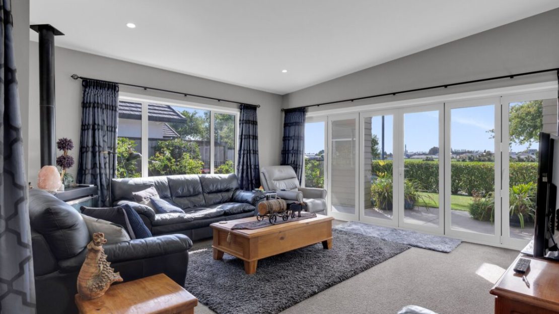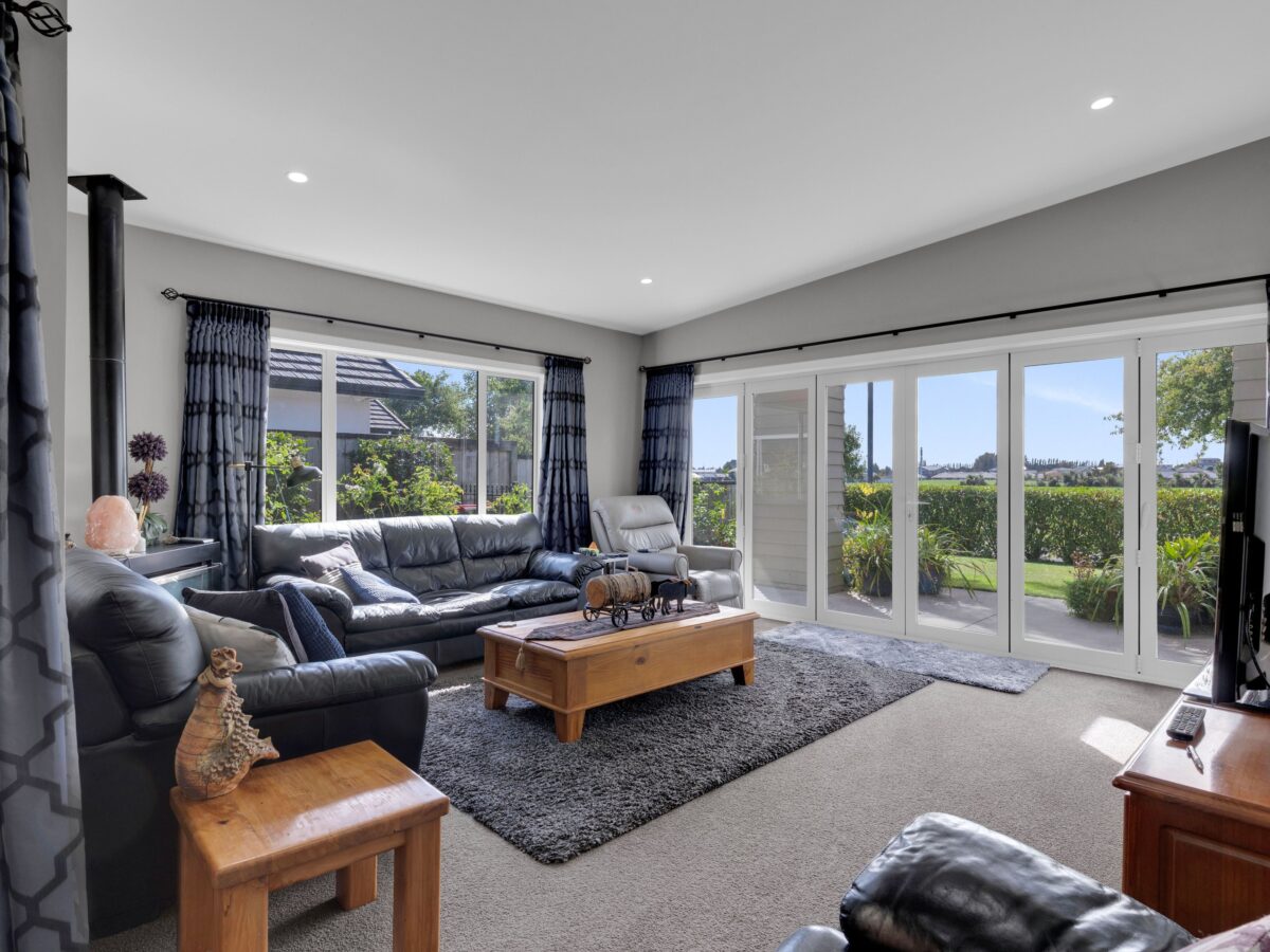 Offering four well-appointed bedrooms and two modern bathrooms, this home is ideal for growing families. The thoughtfully designed layout includes two spacious living areas and a separate dining space, providing flexibility for both relaxation and entertaining. The high stud ceilings enhance the sense of space and light, creating an inviting and airy atmosphere throughout.